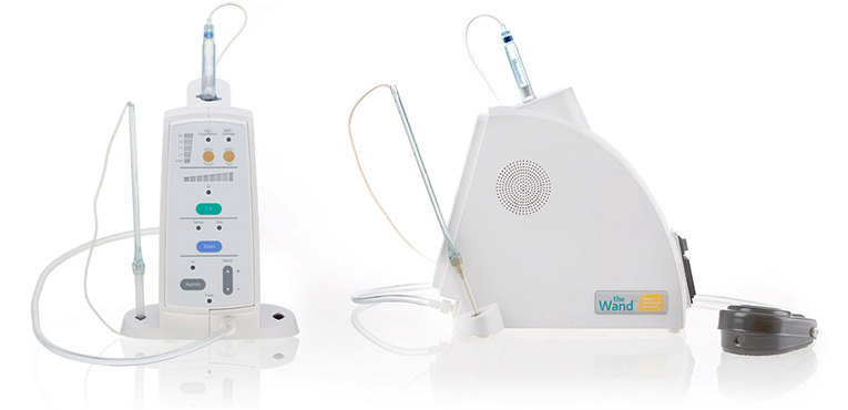 The Wand is a computer-steered system for the painless administration of all kinds of local anesthesia. Anesthesia is applied in liquid form using special tips (needles), which the dentist injects into the selected region of the patient’s oral cavity.