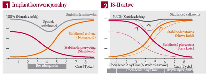 A big advantage of Neobiotech implants is the so-called AnyTime Loading concept (see charts below), which has enabled to increase stability of the implant in the clinically-sensitive post-implantation period. Neobiotech implants are characterized by better assimilability than conventional implants, and thus reduce the risk of rejection of the implant by the patient’s body.